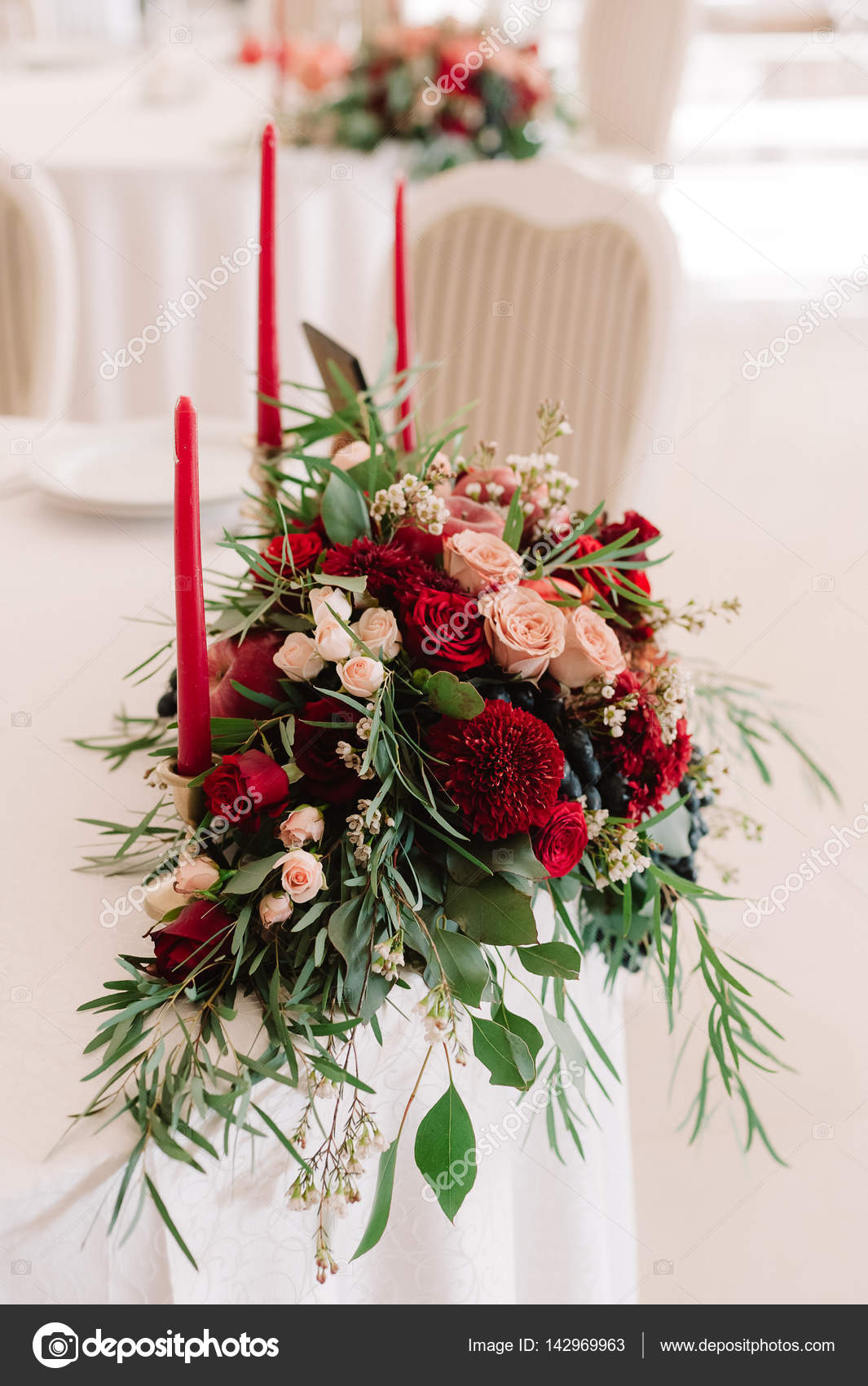 Glorious Autumn Bouquet On Guest Wedding Table Stock Photo