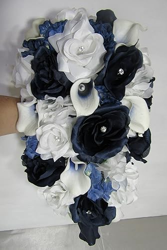 Amazon Com Navy Blue White Rhinestone Rose Calla Lily Cascading