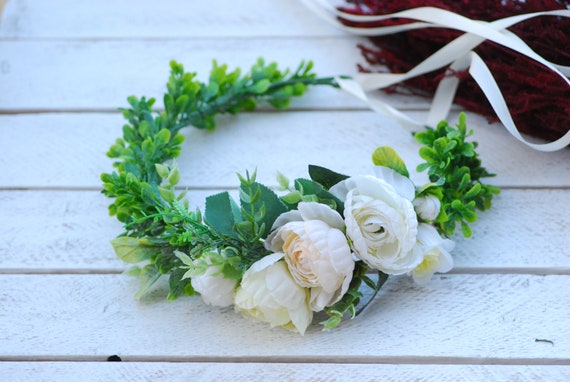 White Green Flower Crown Flower Halo Flower Headband Bridal Etsy