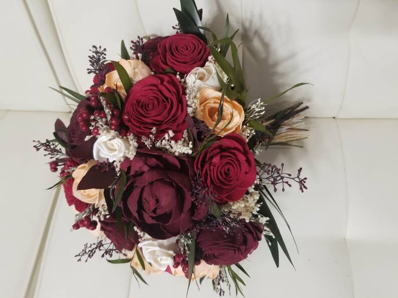 Custom Burgundy Wine Peach Sola Flower Bouquet And Dried Etsy
