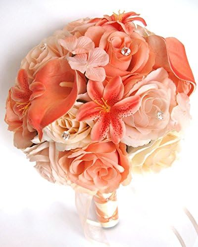 Amazon Com Wedding Bouquets Bridal Silk Flowers Coral Calla Lily