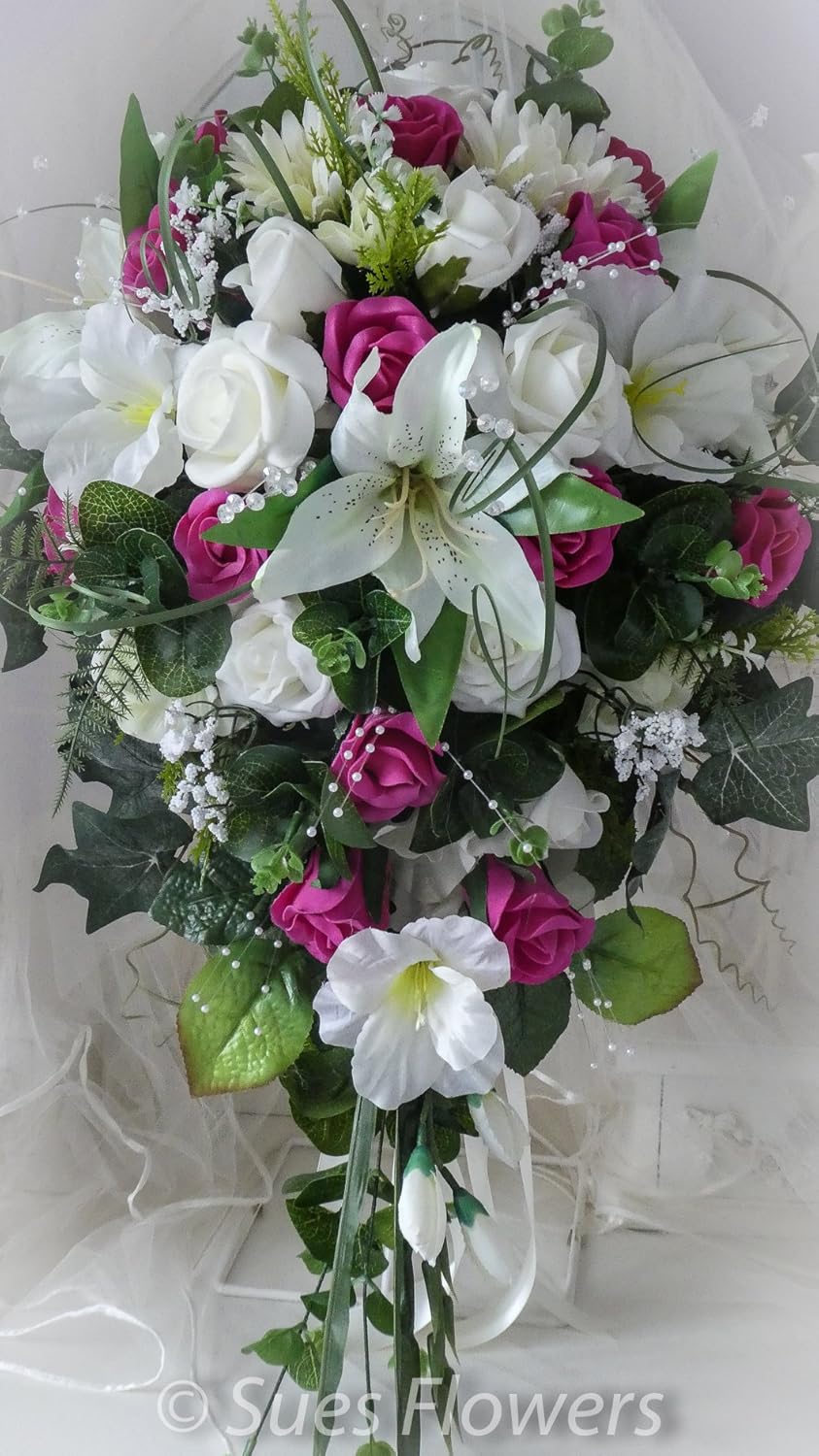 Wedding Flowers Brides Teardrop Bouquet In Hot Pink Fushia And