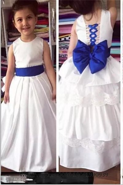 White Lace Flower Girl Dresses For Wedding With Bow Royal Blue A