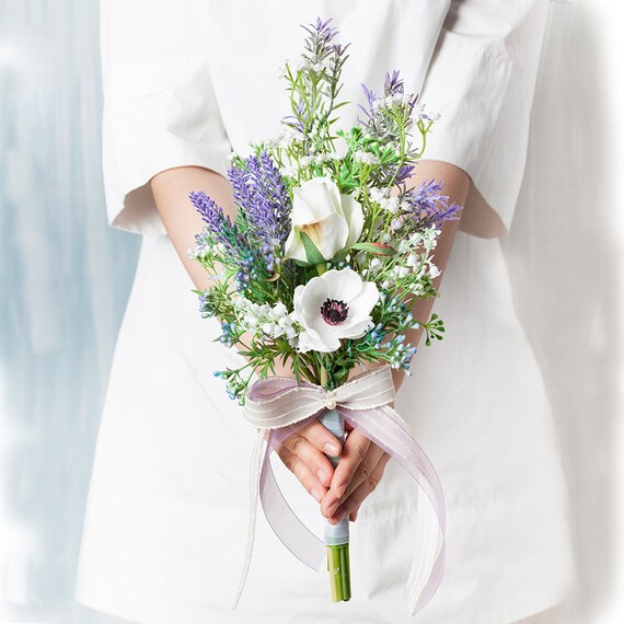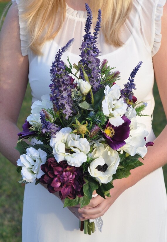 Wildflower Silk Flower Wedding Bouquet Lavender Anemone Etsy