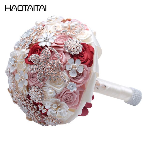 Bridal Bride Bouquet 2018 Elegant Pink Ivory Red Rose Artificial