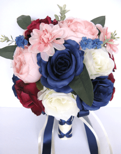 17 Piece Wedding Bouquet Package Bridal Silk Flowers Navy Pink