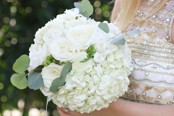 White Hydrangea Bouquet Fresh Flowers White Bridal Bouquet Etsy