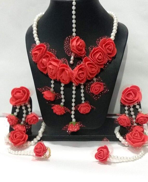 Red Artificial Flower Jewelry Bridal Bride Bridesmaid Floral Etsy
