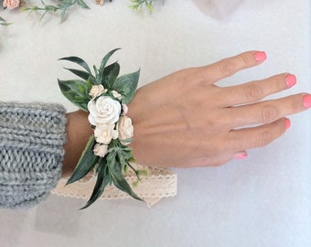Wedding Flower Wrist Corsage Soft White Bridal Floral Bracelet