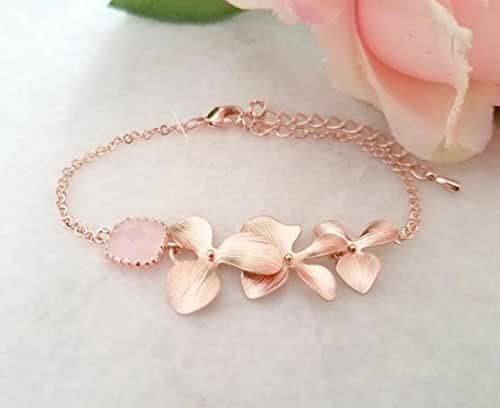 Amazon Com Blush Pink Rose Gold Bracelet Flower Bracelet Clear