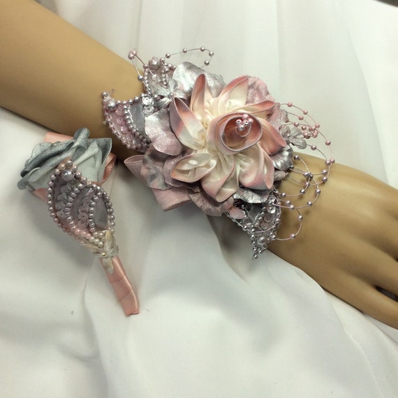 Corsage And Boutonniere Set Dusty Rose And Silver Corsage Etsy