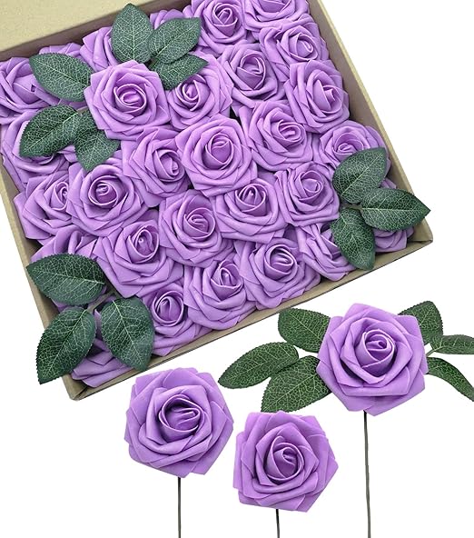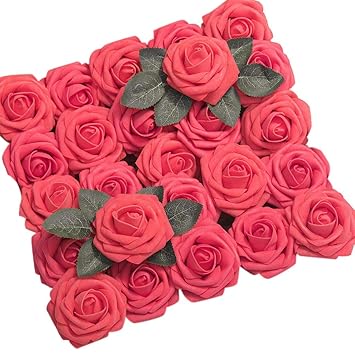 Puyujin Artificial Flowers 50pcs Roses Artificial Flowers Coral