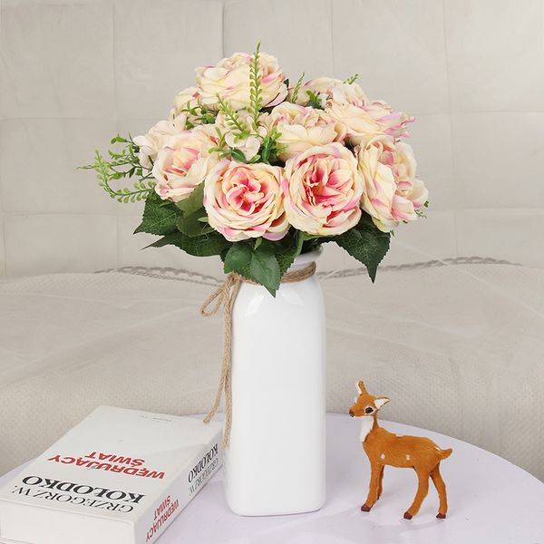 Nine Head Silk Rose Flower Artificial Flowers Bouquet Imitation