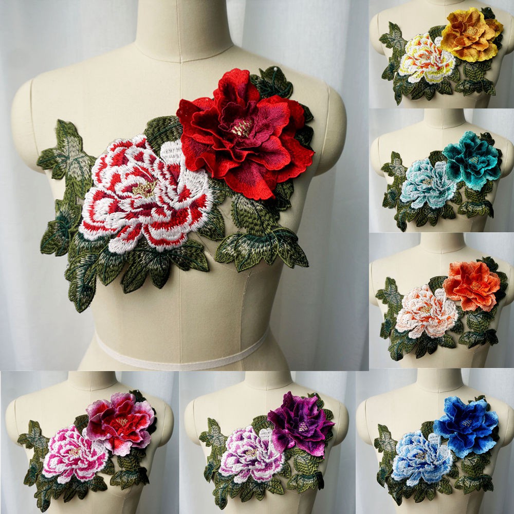Embroidery 3d Peony Flower Applique Sewing Lace Fabric Collar