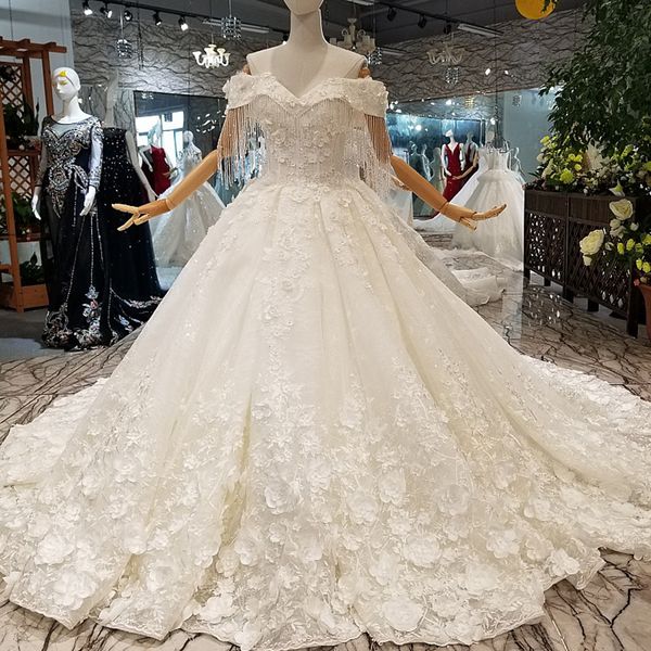 Luxury Garden Wedding Dress Beaded Sweetheart 3d Flowers Long