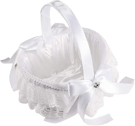 Amazon Com Amosfun Wedding Bowknot Flower Girl Basket Lace Ribbon