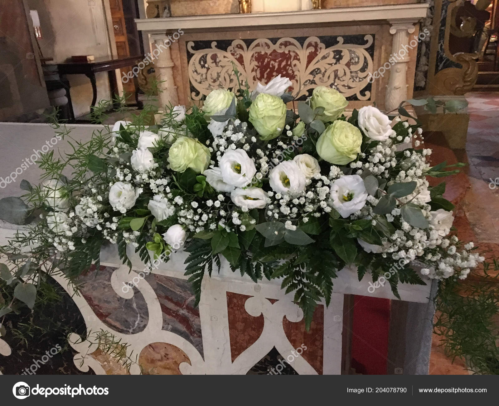 Wedding Bouquets White Roses Bridal Flowers Church Balustrade