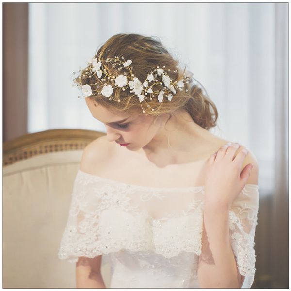 Wedding Bridal White Flower Headband Headpieces Crystal Rhinestone