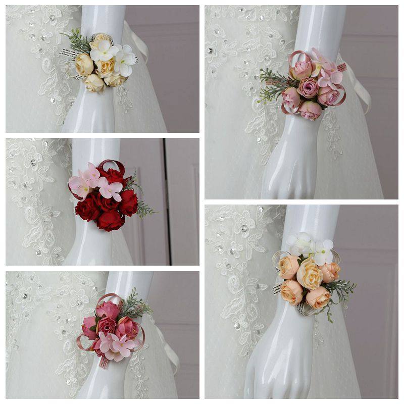 Wedding Silk Hand Flowers Wrist Corsage Bouquet Bride Bridesmaid