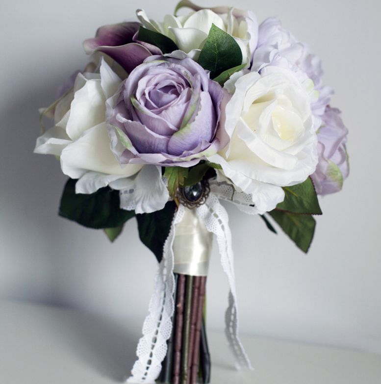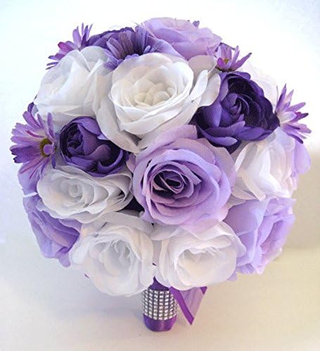 Amazon Com Wedding Bouquets Bridal Silk Flowers Purple Light Blue