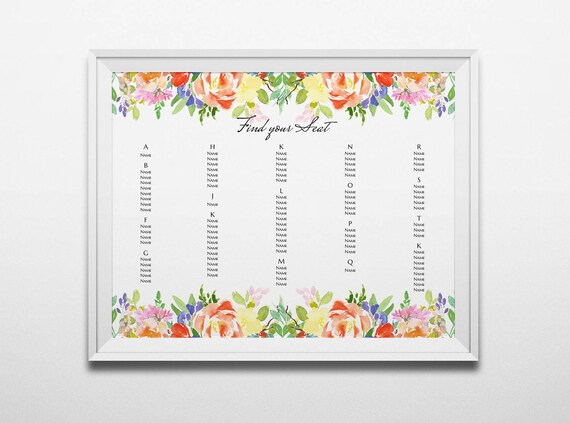 Alphabetical Seating Chart Poster Template Floral Spring Etsy