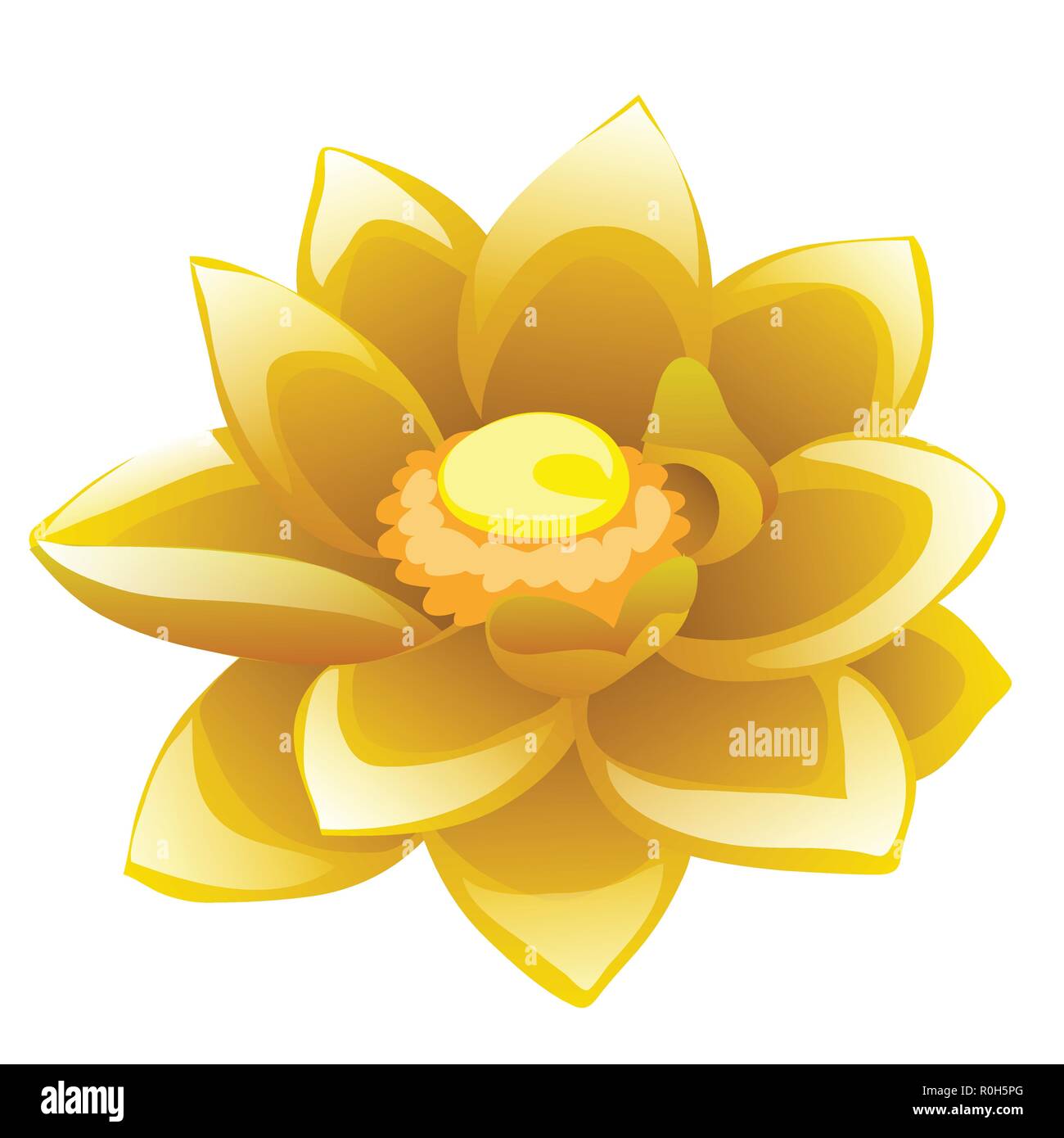 Cartoon Flower Yellow Lotus Isolated On White Background Vector