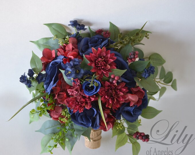 Maroon Bridal Bouquet Wedding Flower Navy Silk Flower Wedding