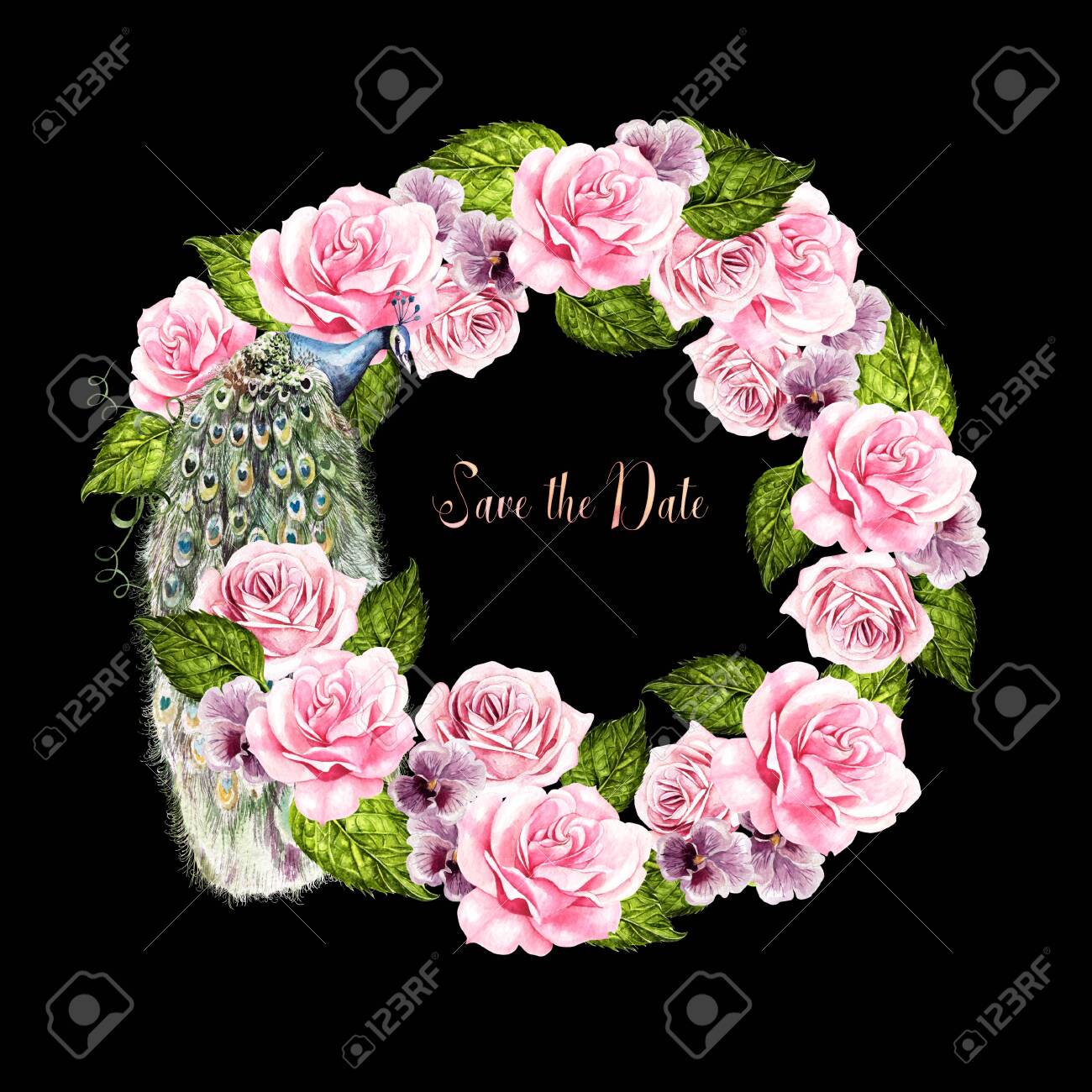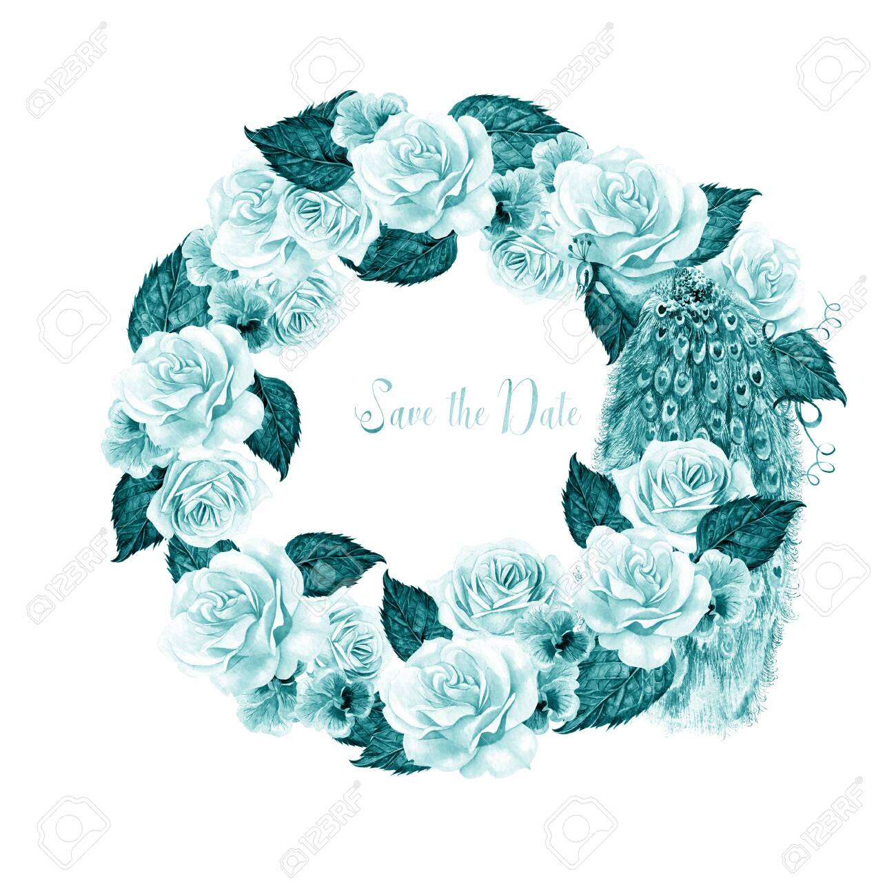 Beautiful Watercolor Wedding Wreath With Peacock Flowers Of