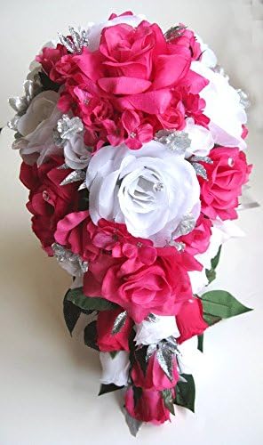 Amazon Com Wedding Bouquet Bridal Silk Flowers Cascade Fuchsia