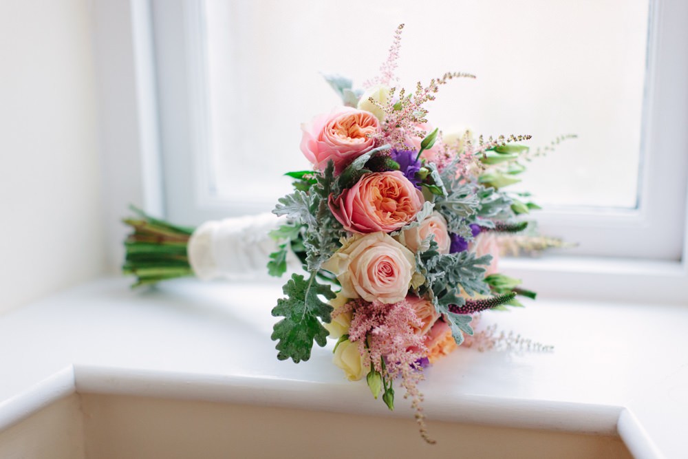 Dorset Wedding With A Peach Pink Vuvuzela Rose Bouquet Mint