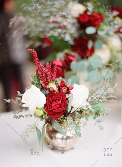 Red And White Wedding Flower Arrangement Stock Photo Offset