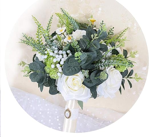 Janevini Romantic Wedding Bouquet White Bridal Flowers Fake