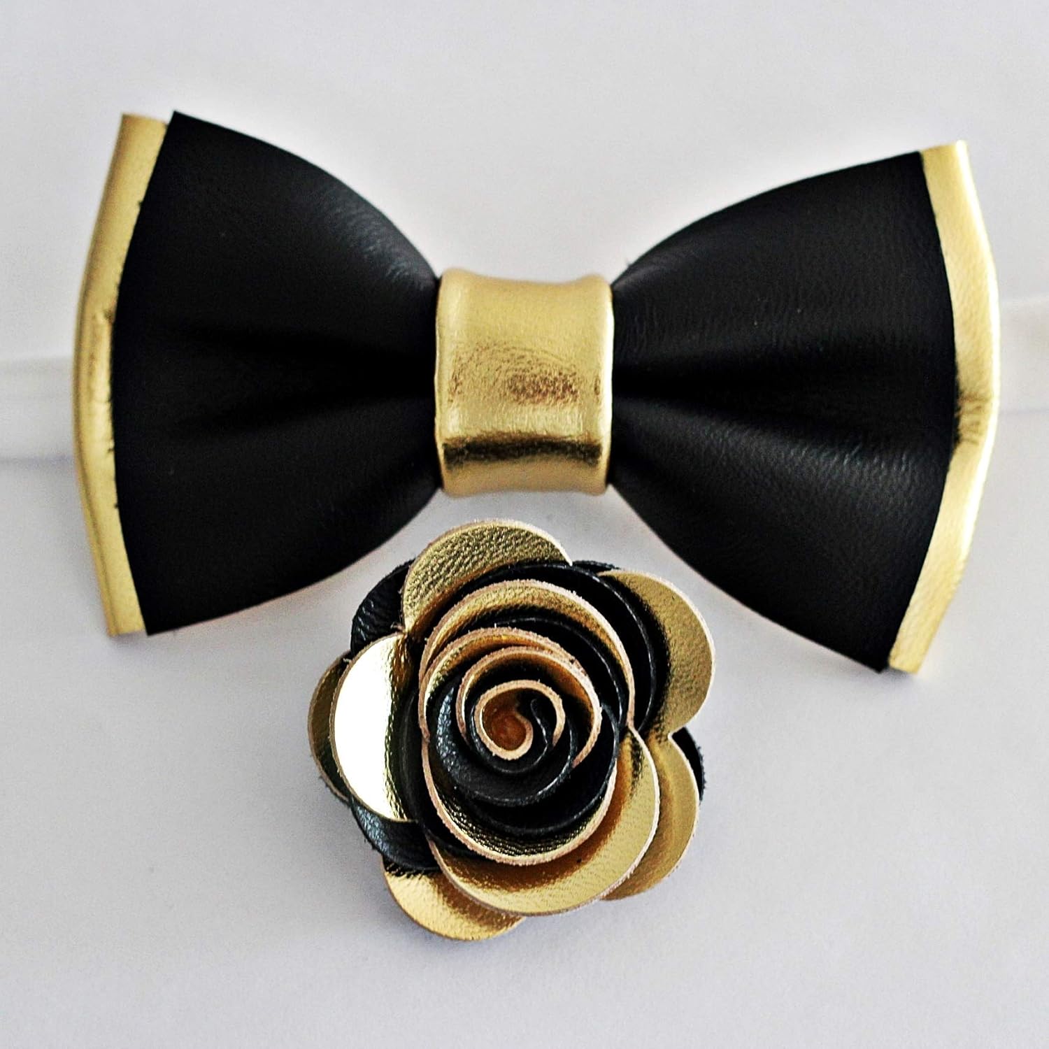 Amazon Com Black And Gold Bow Tie And Lapel Flower Genuine