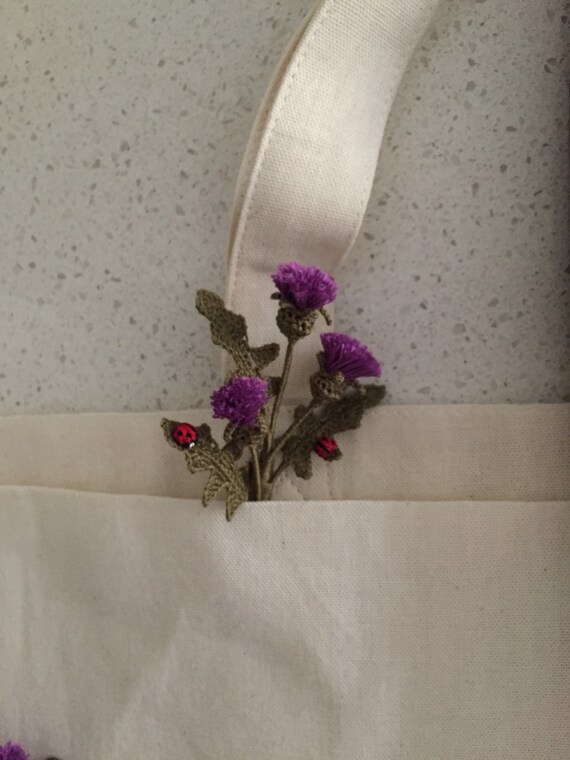 Crochet Scottish Thistle Flowers With Little Ladybirds Brooch Etsy