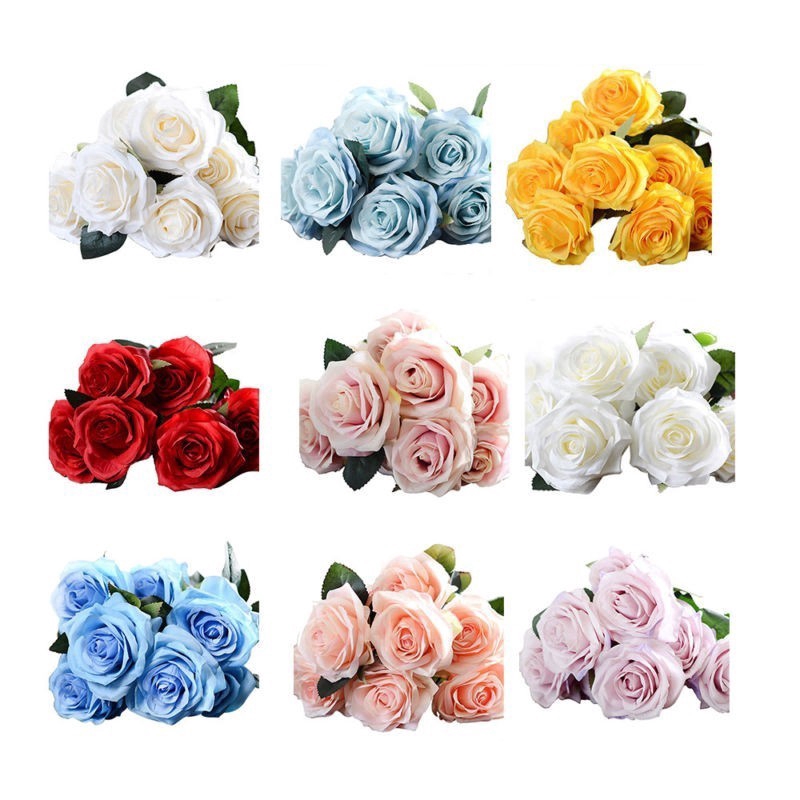 10 Heads Artificial Silk Rose Flowers Centerpiece Wedding Home