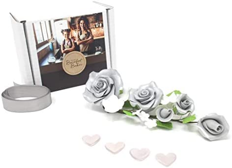 25th Silver Wedding Anniversary Sugar Rose Flower Cake Topper
