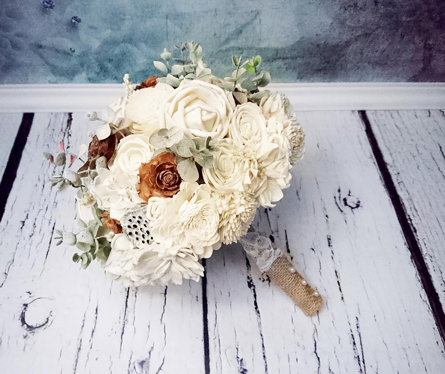 Amazon Com Bridal Ivory Brown Rustic Wedding Bouquet With Sola