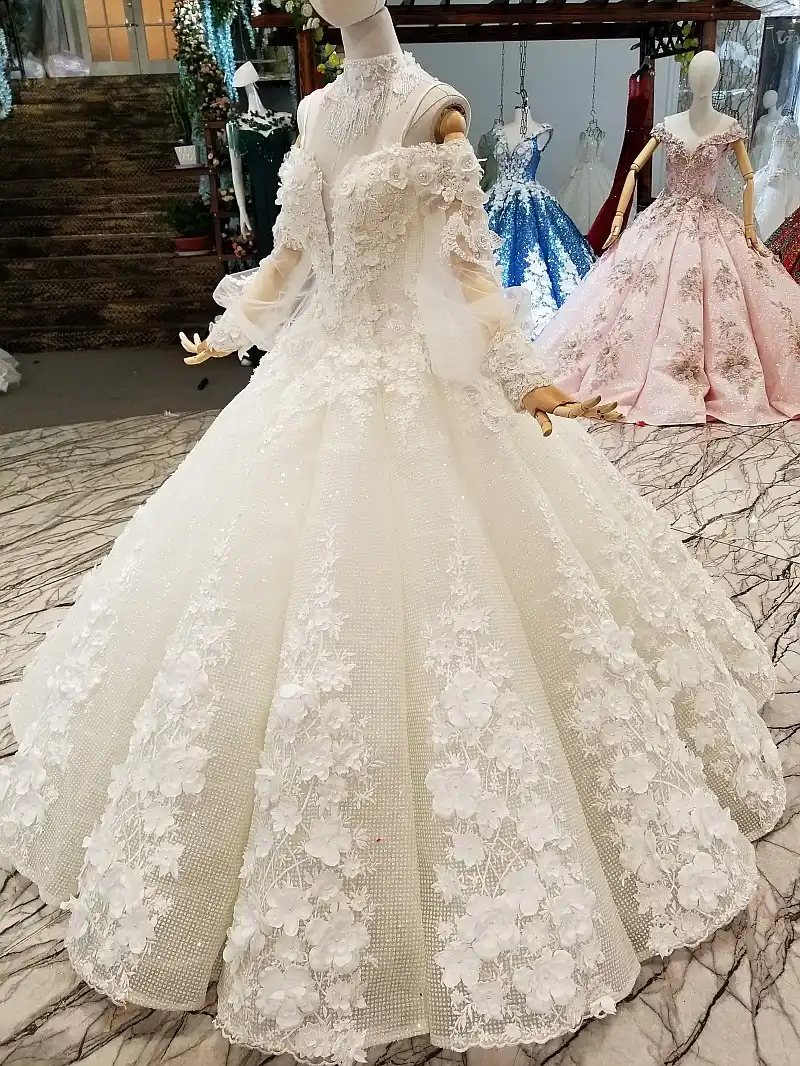 Ls173300 Floor Length Ball Gown Wedding Dresses With Collar Train