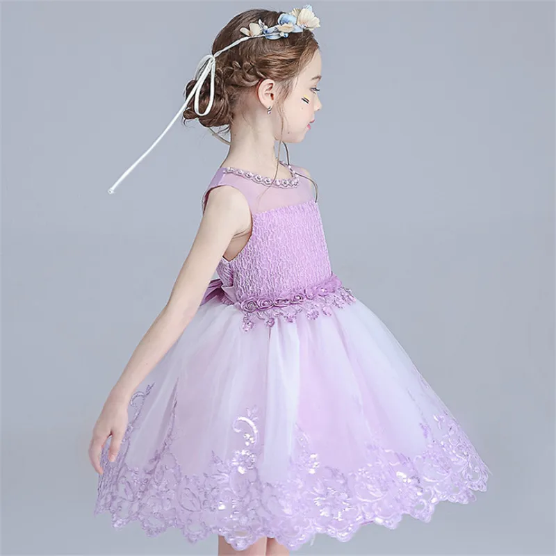 Kids Flower Girl Dress Purple Lace Appluqies Flowers Wedding Party