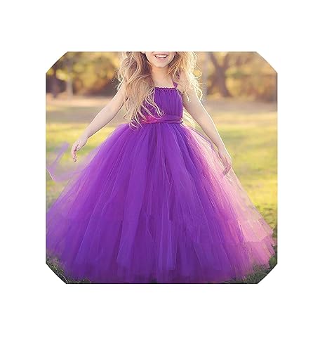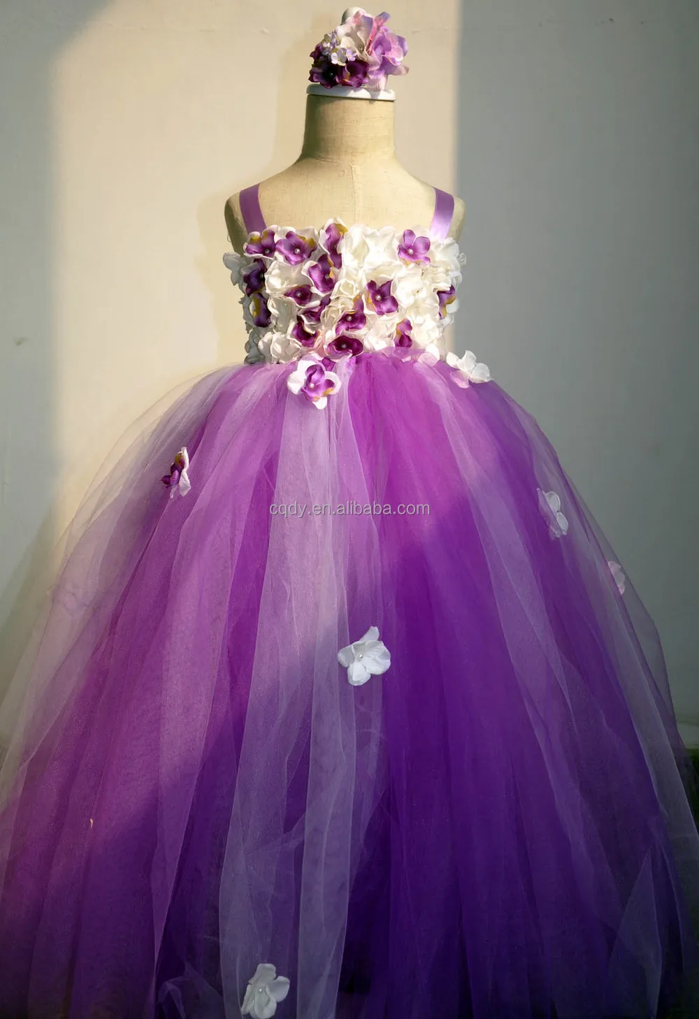 Floral Children Tutu Dress Flower Girl Dress Purple Tulle Fairy
