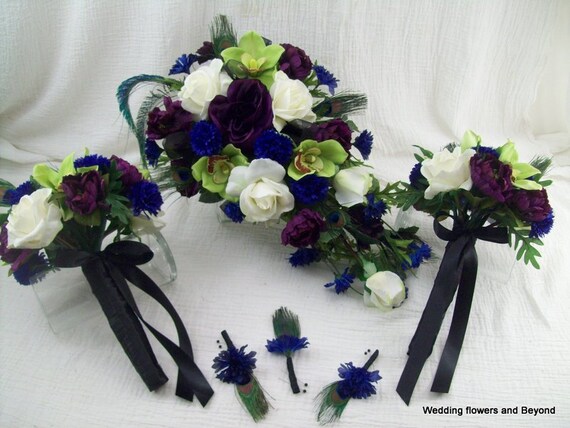 Peacock Themed Bridal Bouquets Peacock Feather Boutonnieres Etsy