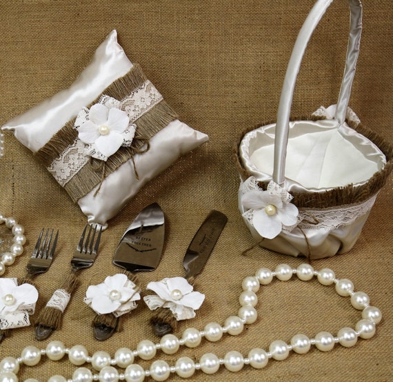 Ivory Flower Girl Basket And Ring Bear Pillow Set Simple Etsy
