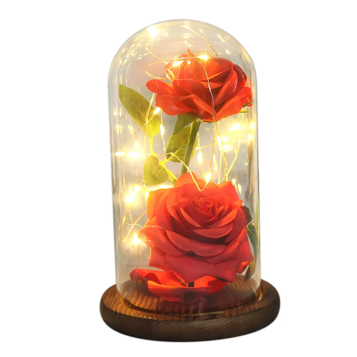 Eternal Life Flower Glass Cover Artificial Rose Flowers Decoration