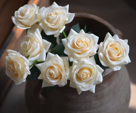 Pale Champagne Roses Real Touch Flowers Diy Wedding Flowers Etsy