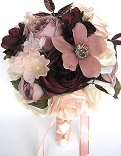 Amazon Com Wedding Silk Flowers Bouquet Bridal Peach Navy