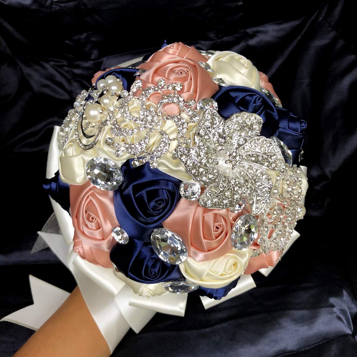 Wedding Bouquets For Bride Rose Gold And Navy Silk Wedding Etsy
