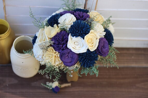 Sola Bouquet Rustic Wedding Purple Bouquet Wedding Bouquet Etsy