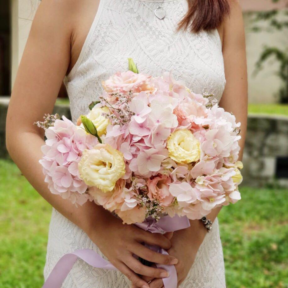 Wedding Bouquet Flowers Peach Pink And Lemon Yellow With Green