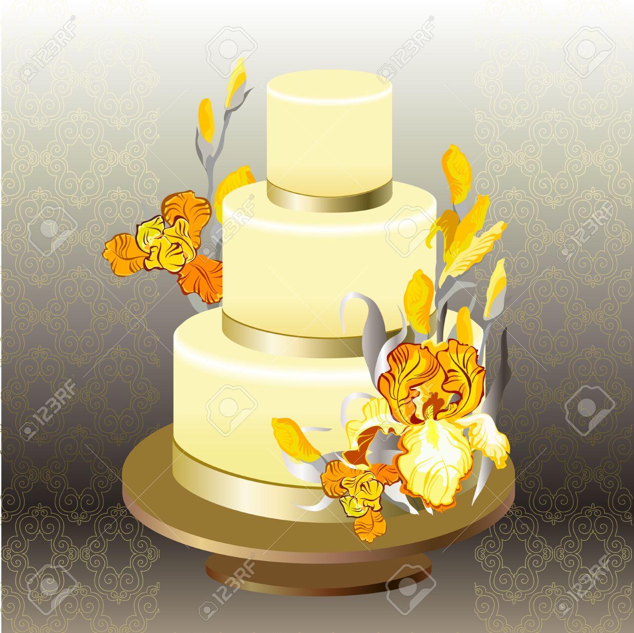 Wedding Cake With Gold Orange Yellow Iris Flowers Beautiful