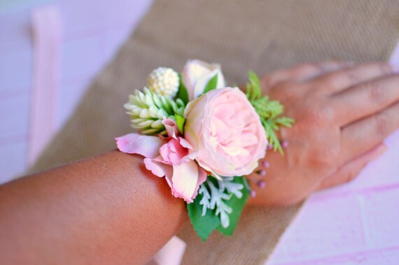 Pink Wrist Corsage Pink Bridal Cuff Wedding Flower Bracelet Etsy